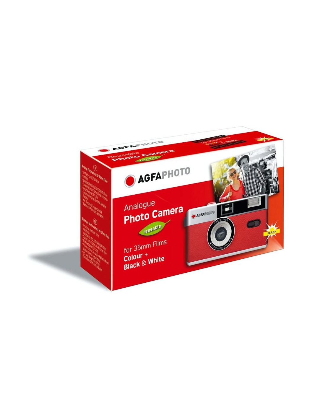 A AgfaPhoto é uma câmara analógica reutilizável para rolos 35mm coloridos e Preto/Branco.