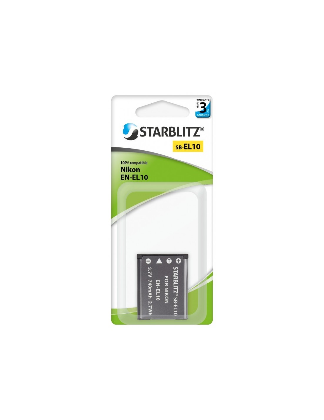 Bateria recarregável de iões de lítio compatível com Nikon EN-EL10 3.7v 740mAh