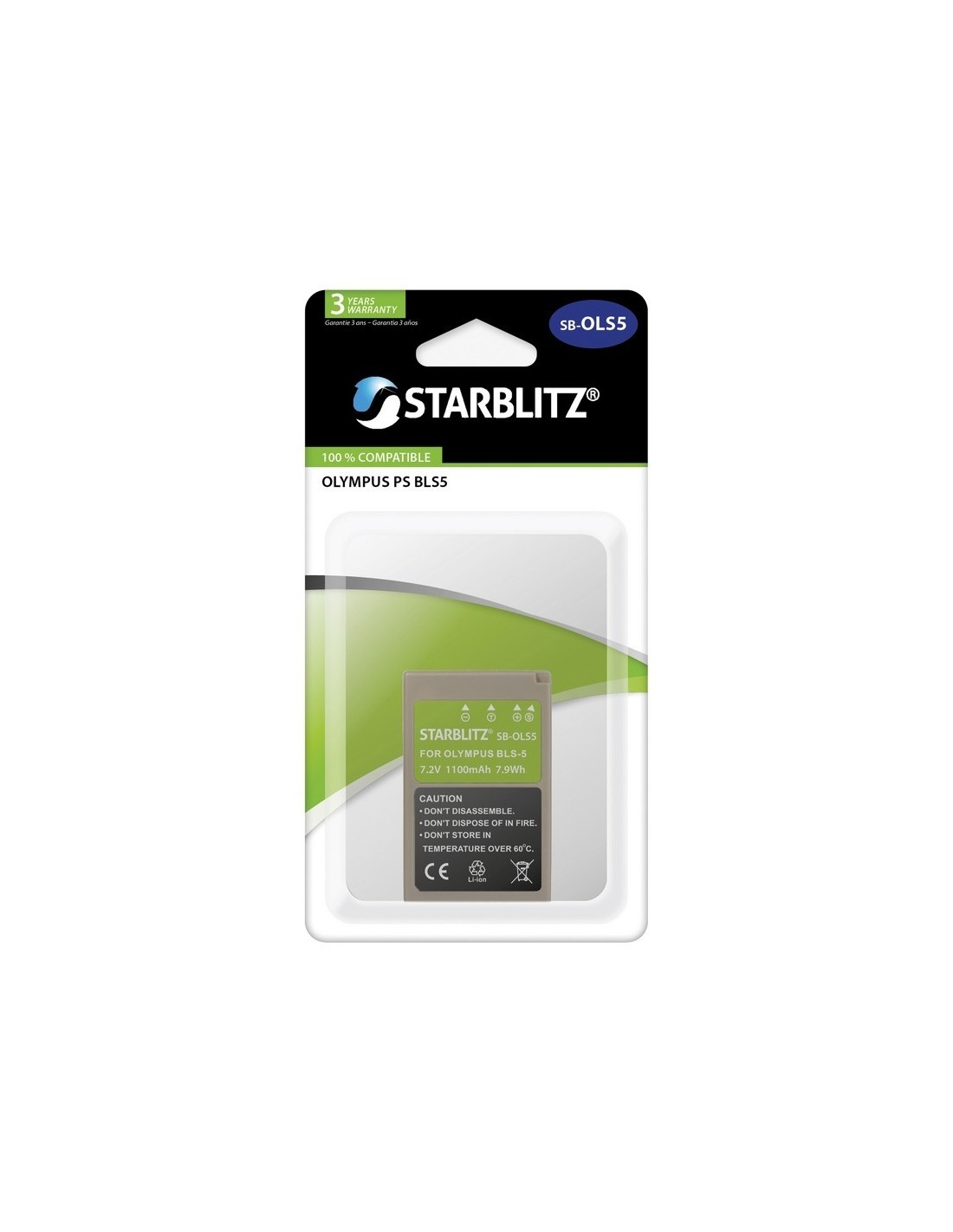 Bateria recarregável de iões de lítio compatível com Olympus PS BLS5 7.2v 1100mAh