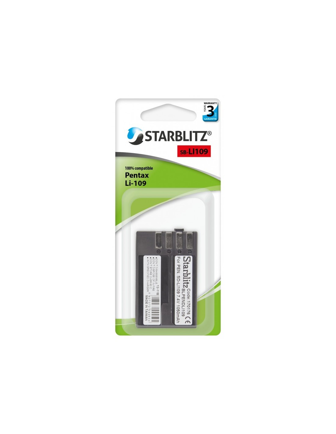 Bateria recarregável de iões de lítio compatível com Pentax LI-109