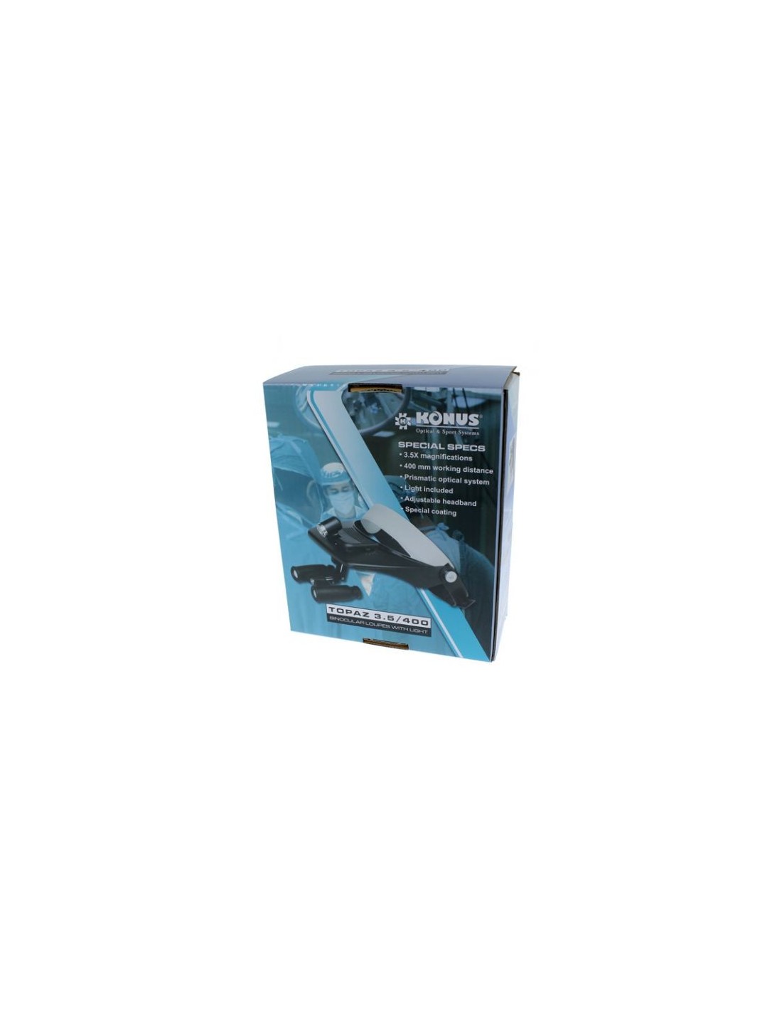 A lupa de cabeça Konus 3.5x com Topaz Primastic Lighting pode ser semente como um microscópio em forma de binóculos. Este ampliador de cabeça é perfeito para fins cirúrgicos e industriais. Por causa da distância de trabalho de 400mm e o campo de trabalho de 86mm, este microscópio binóculos é a solução perfeita para projetos que exigem corte preciso. O Topaz foi equipado com uma lâmpada de 1W