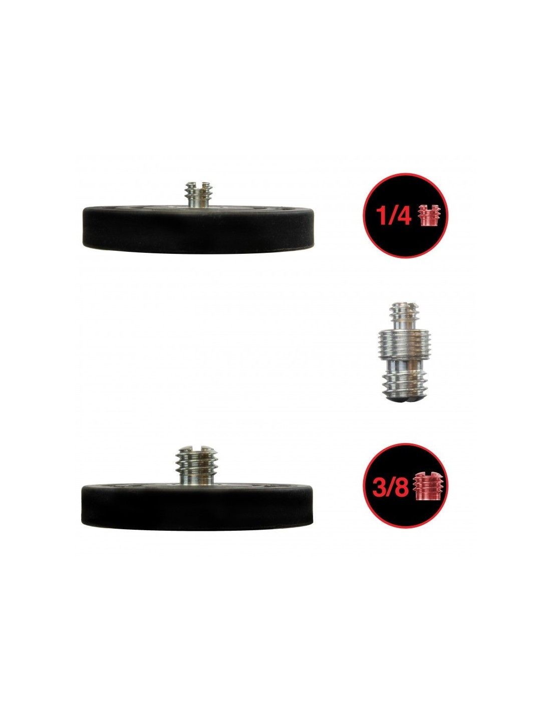 Parafuso 1/4 e 3/8 para cabeças de tripés